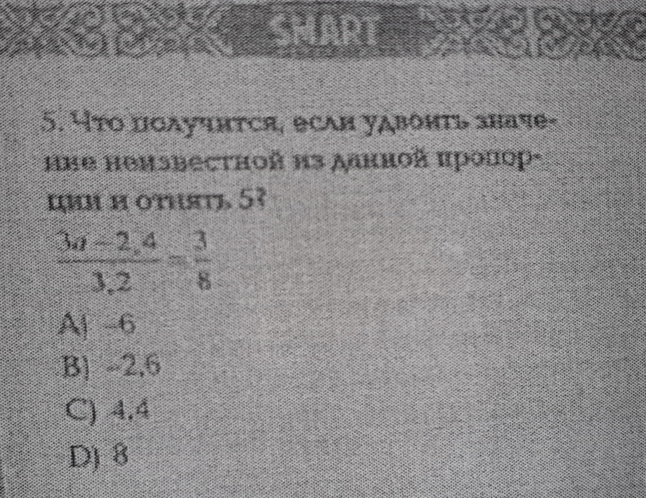 Что получится, если удвоить значение неизвестной из данной пропорции и отнять 5?