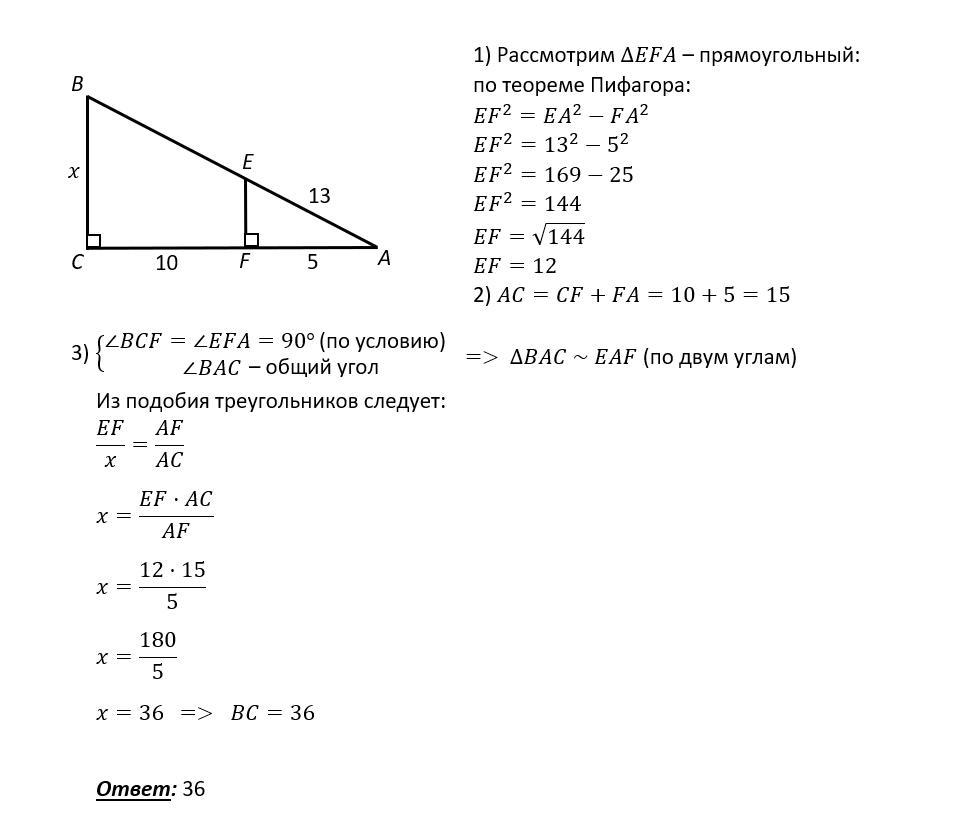 Рассмотрим тр-ки △ABC и △AEF. У них углы <BCA и <EFA прямые, а <BAC(EAF) - общий, значит △ABC ~ △AEF по 2м углам.
