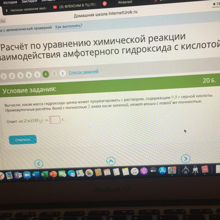 n(H2SO4) =n(Zn(OH)2)=0,1моль