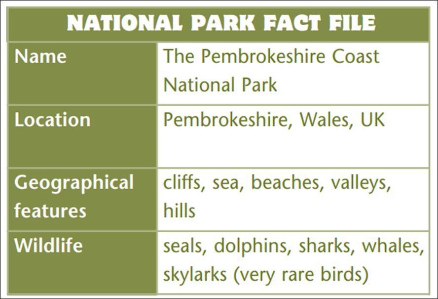 Задание 2. Используйте информацию из приведенного ниже файла фактов, чтобы написать статью о национальном парке. Следуйте плану: