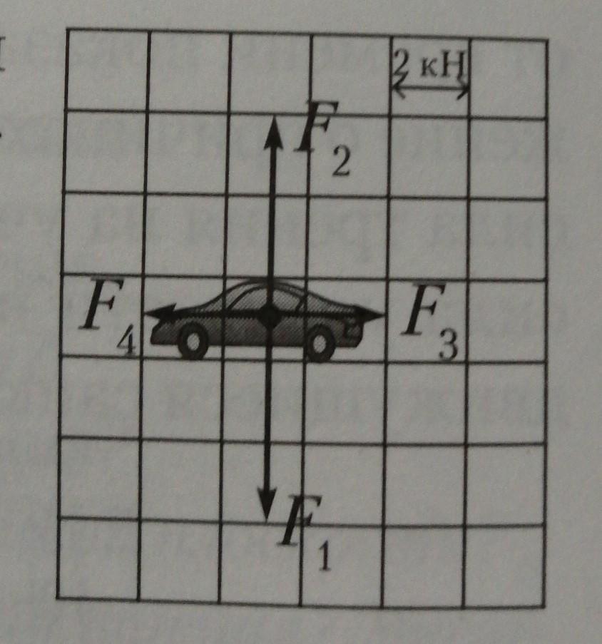 Легковой автомобиль m=500кг. движется по прямолинейному участку шоссе с постоянной скоростью. Силы, действующие на автомобиль, показаны на рисунке 74 назовите все силы и определите их модули. Чему равна равнодействующая всех сил, действующих на автомобиль.