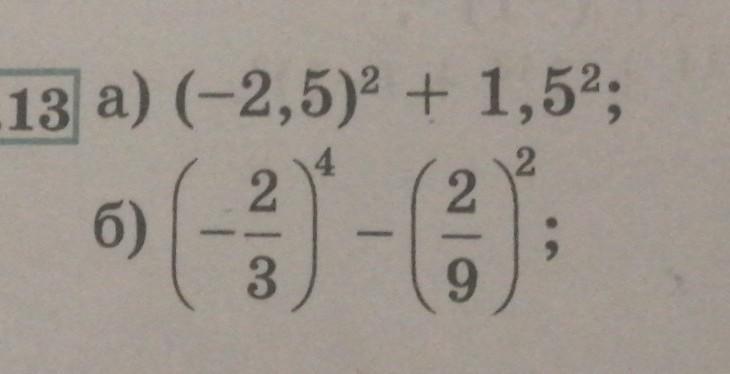 б) (-2/3)^4-(2/9)^2=16/81-(2/9)^2=