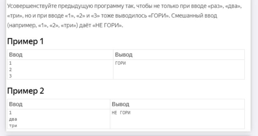 elif a == 'один' and b == 'два' and c == 'три':