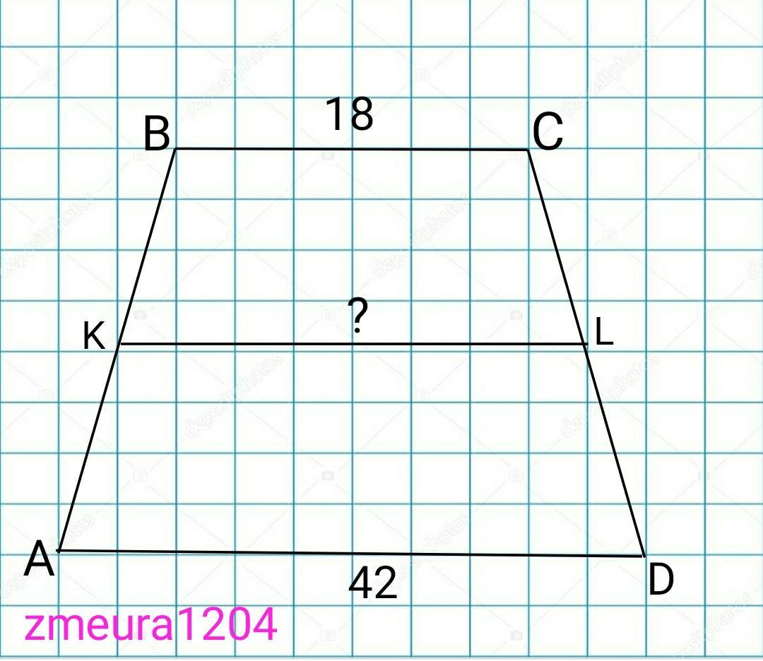 У рівнобічній трапеції основи дорівнюють 18 см і 42 см.Бічна сторона 20 см.. Обчислити трапеції середню лінію трапеції
