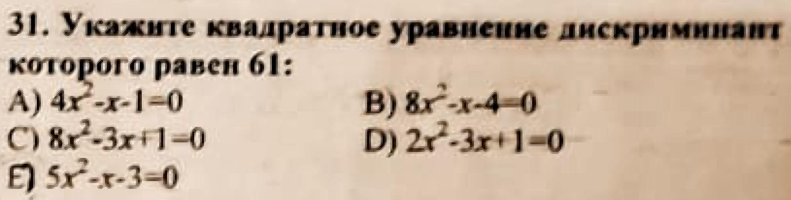 D = b^2 - 4ac = (-1)^2 - 4 × 8 × (-4) = 1 + 128 = 129 (Не подходит)