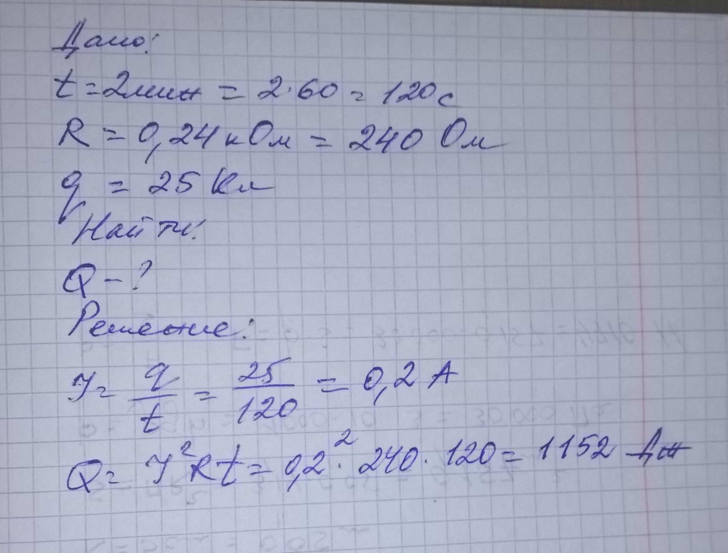 кОм прошел заряд 25кл. Сколько тепла выделяет проводник за это время