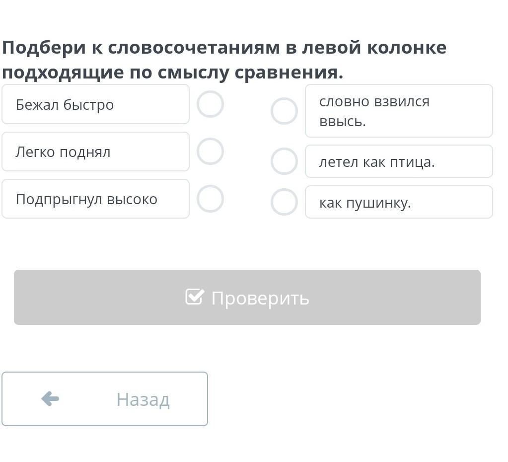 подбери к словосочетание в левой колонке подходящие по смыслу сравнение