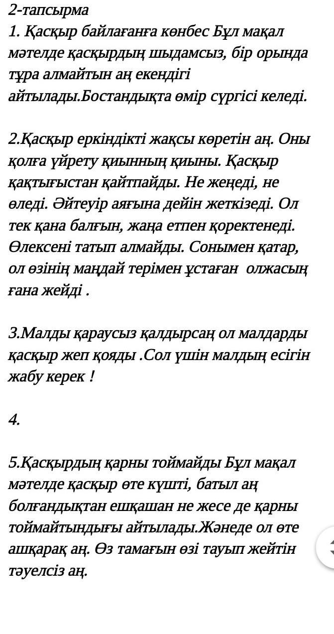 2-тапсырма. Қасқыр туралы мақал-мәтелдерді оқып, мағынасын түсіндір.