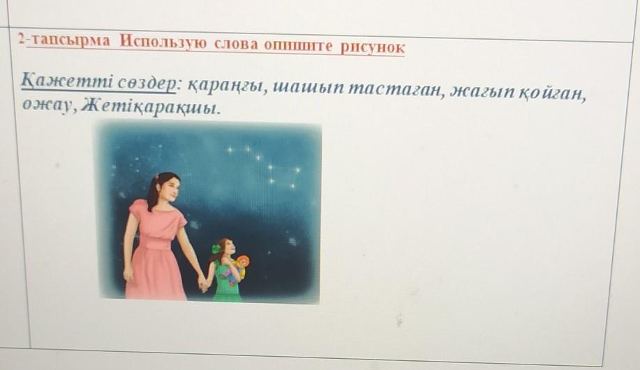 Қажетті сөздер: қараңғы, шашып тастаған, жагып қойған,