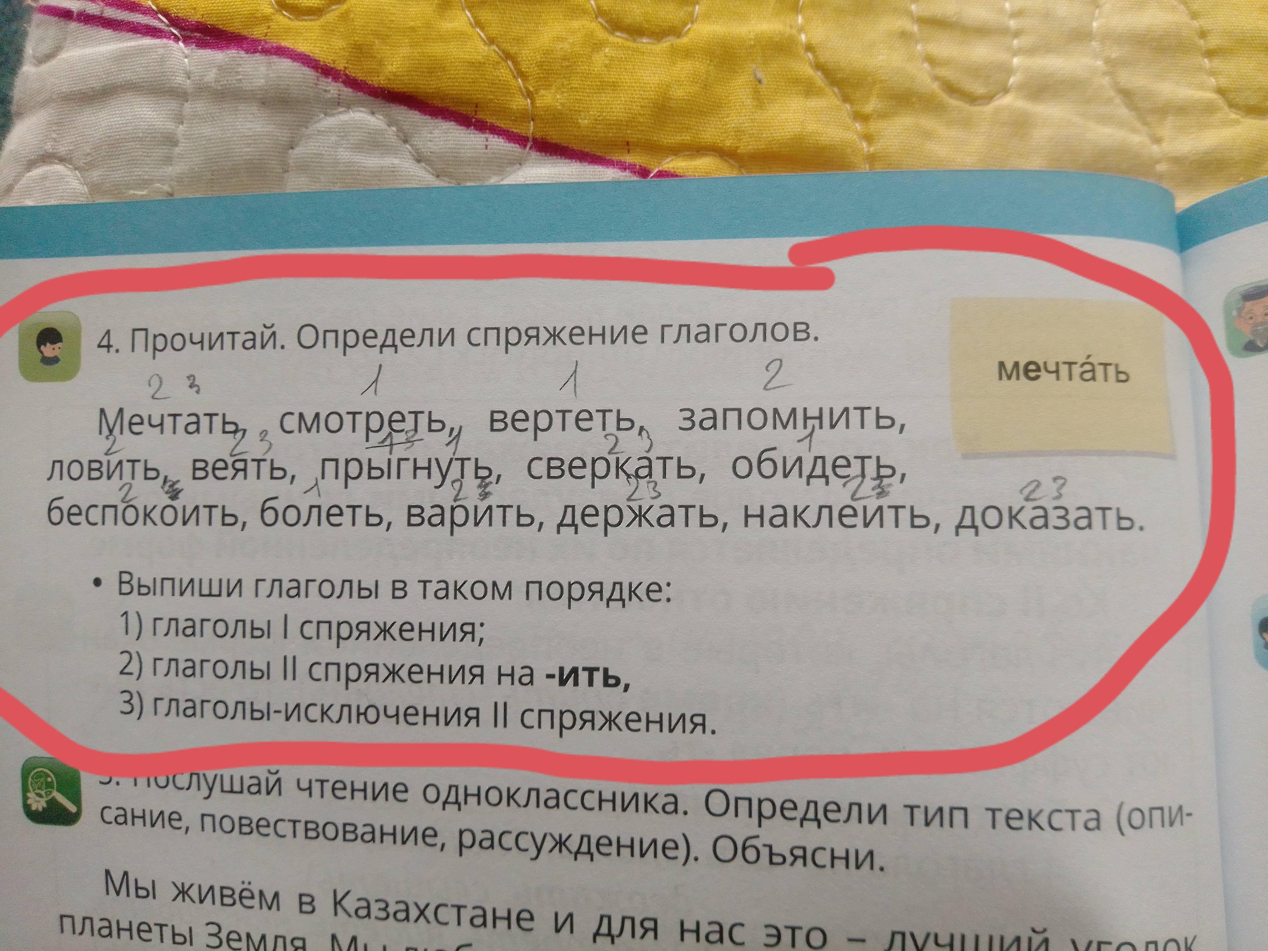 Мечтать-2спр , смотреть-2спр, вертеть-1спр, запомнить-2спр, ловить-1спр, прыгнуть-1спр, сверкать-2спр, обидеть-1спр, беспокоить-2спр, болеть-1спр, варить-1спр, держать-2спр, наклеить-2спр, доказать 1спр.