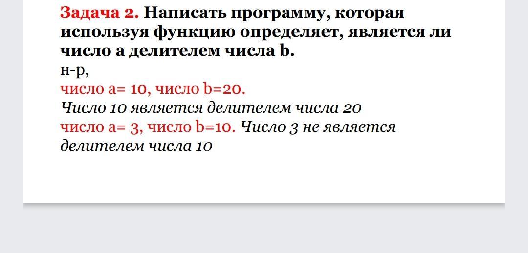 print(f'Число {a} является делителем числа {b} ')