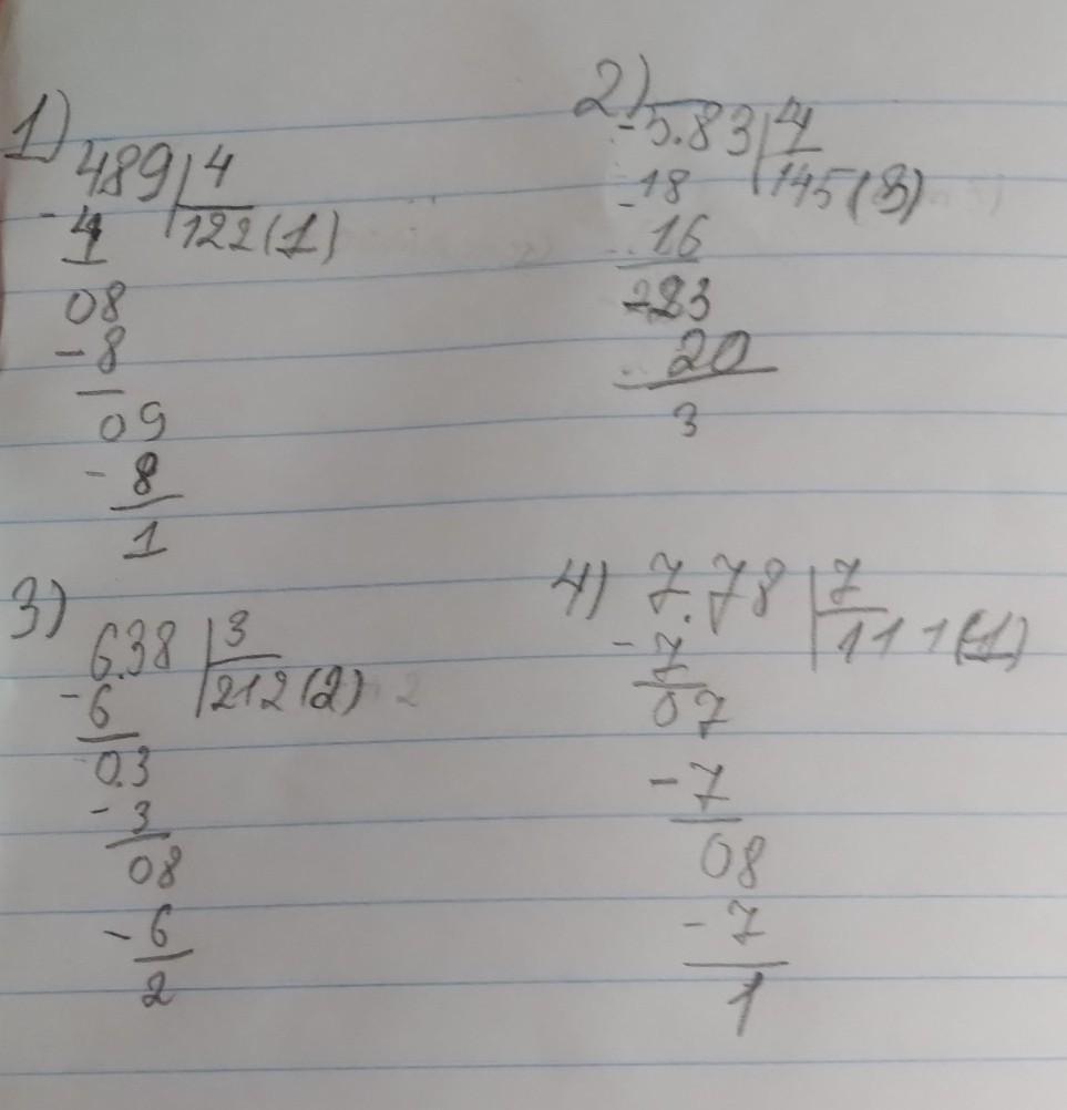 1) 122(1 остаток) 2) 145 (3 остаток) 3) 212 (2 остаток) 4) 111(1 остаток). вобщем остальное спиши с фото, пока
