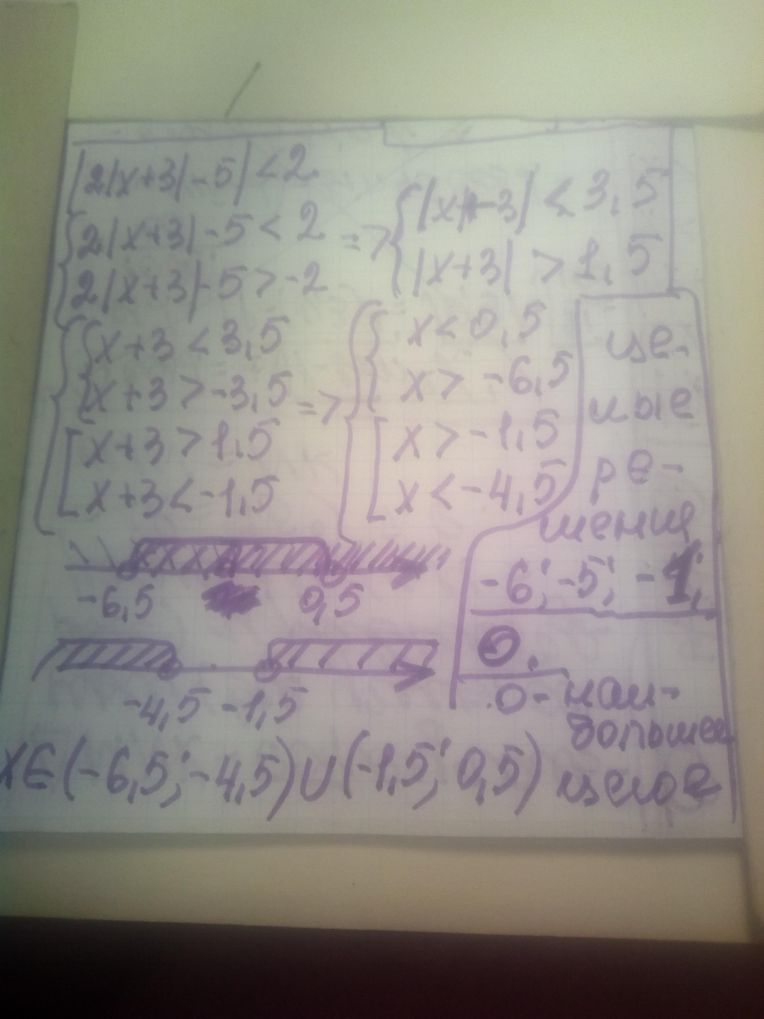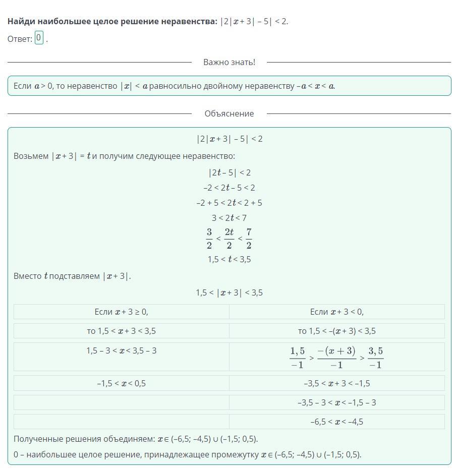 Найди наибольшее целое решение неравенства: |2|x + 3| – 5| < 2.