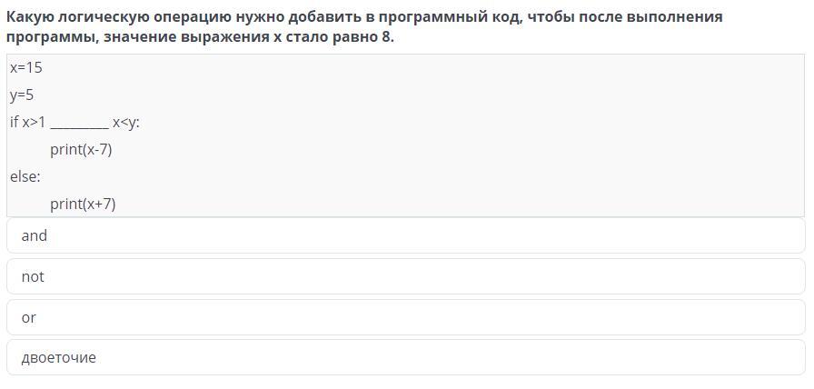 какую логическую операцию нужно добавить в программный код чтобы после выполнение программы значение выражение X стало 8