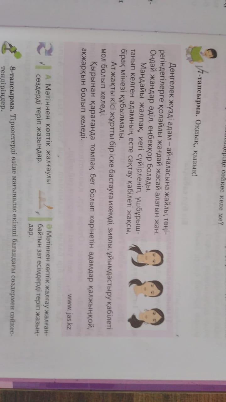 А Мәтіннен көптік жалғаулы сөздерді теріп жазыңдар.