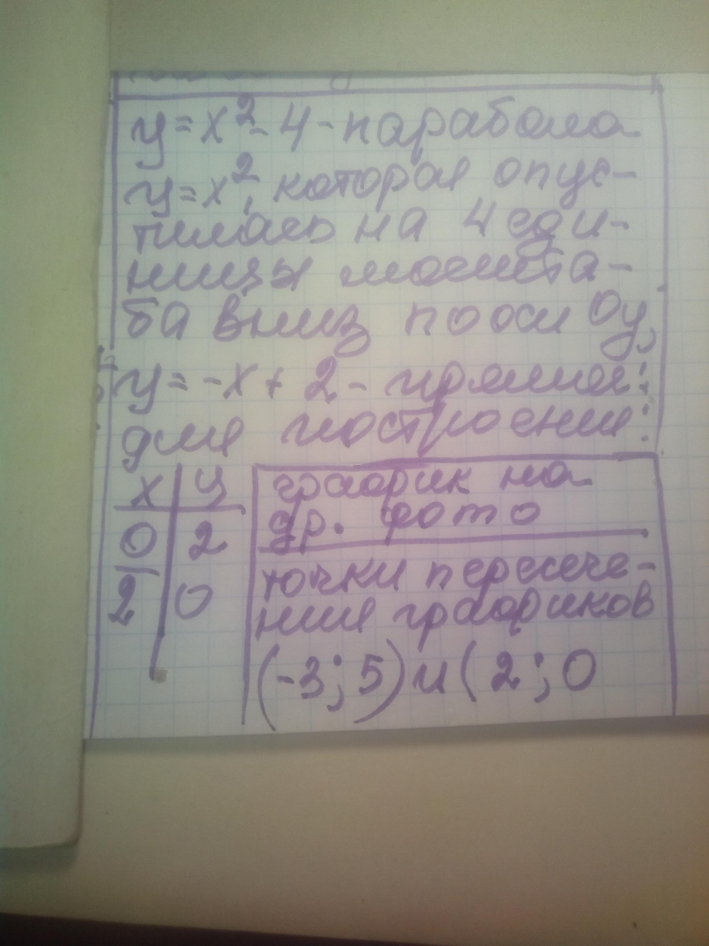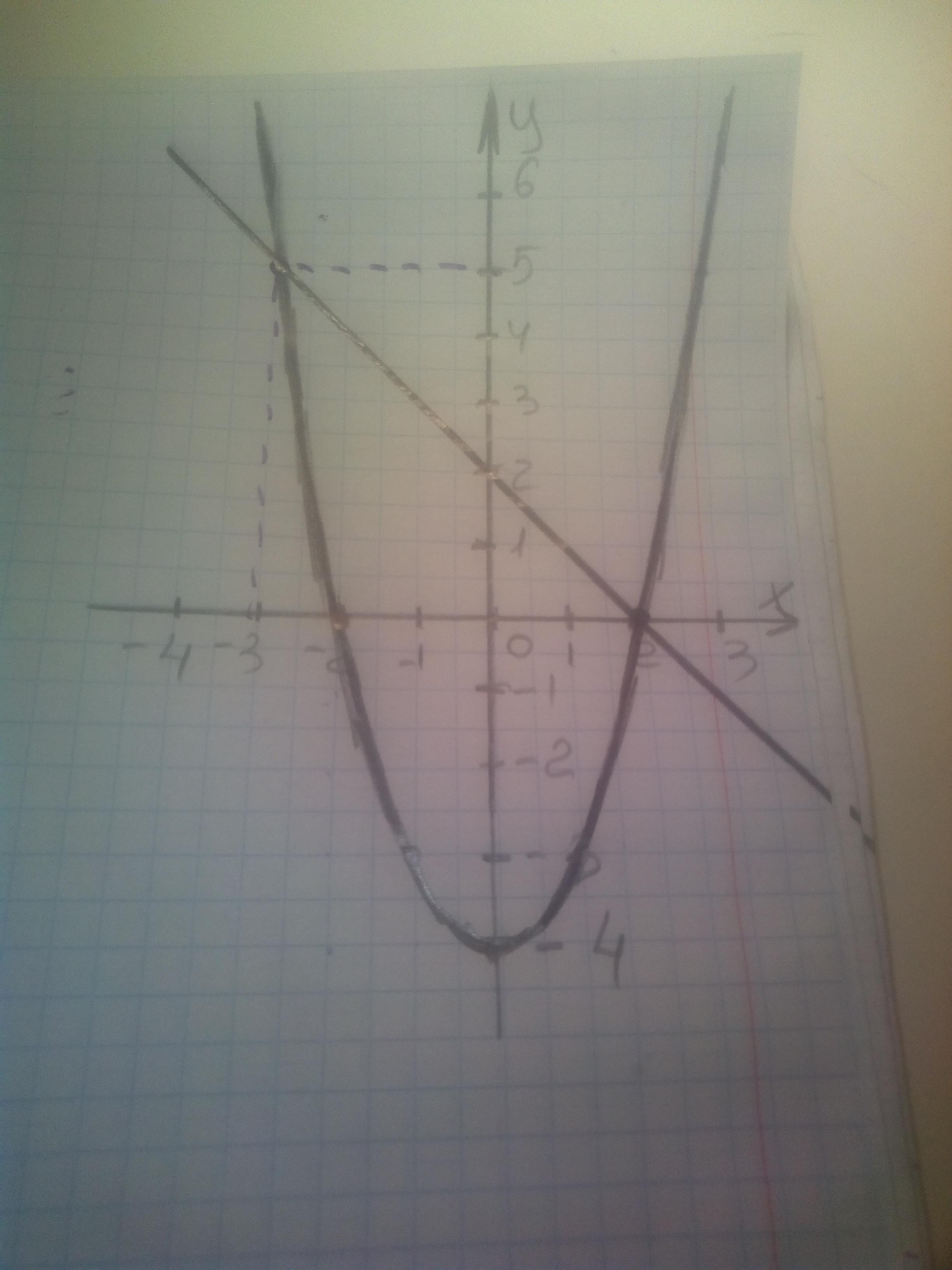 пересечения этих графиков: у=х^2 – 4 и у=-x + 2.