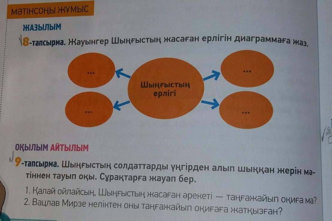 8-тапсырма. Жауынгер Шыңғыстың жасаған ерлігін диаграммаға жаз