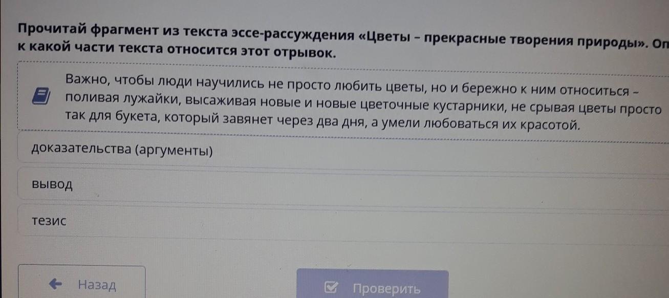 Прочитай фрагмент из текста эссе-рассуждения «Цветы - прекрасные творения природы». Определи,