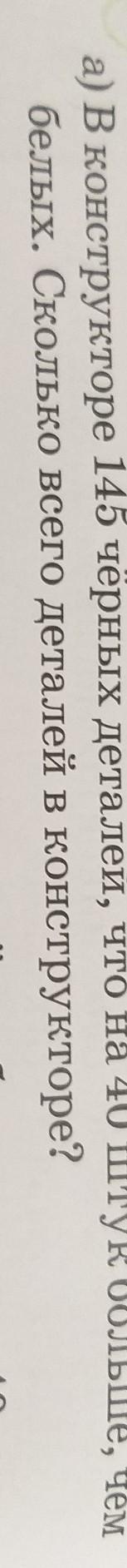 в конструкторе 145 чёрных деталей что на 40 штук больше чем белых сколько всего деталей в конструкторе?