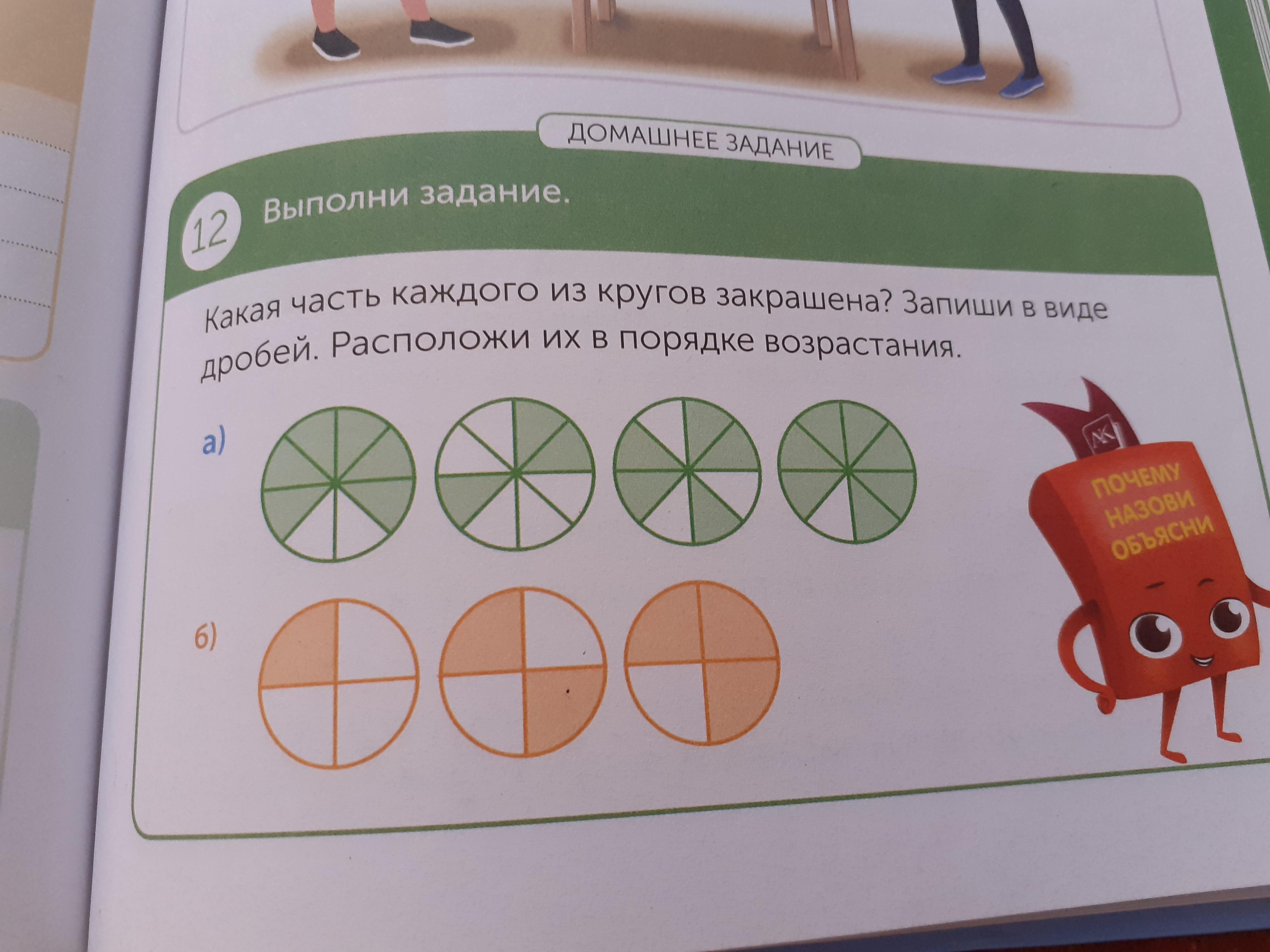 Какая часть каждого из кругов закрашена? Запиши в виде дробей. Расположи их в порядке возрастания.