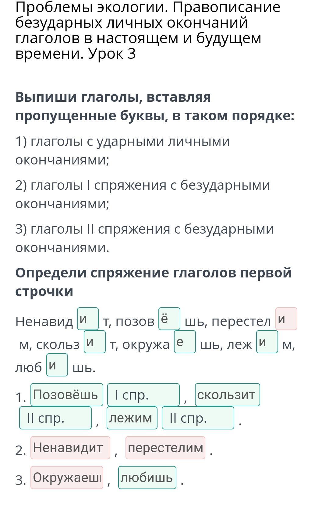 Определи спряжение глаголов первой строчки