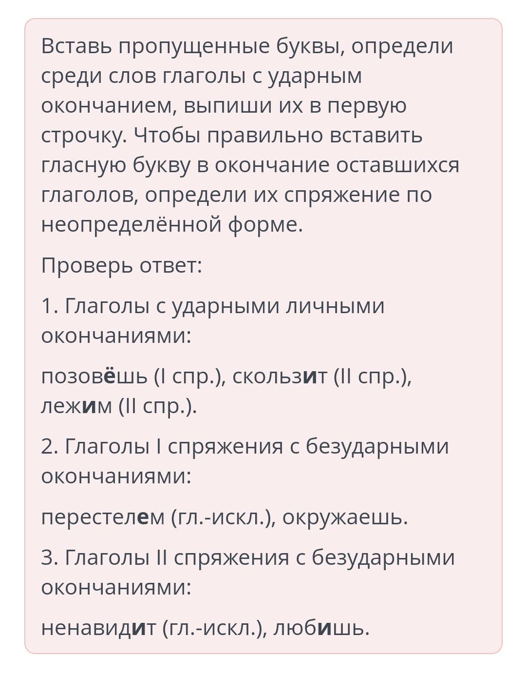 3) глаголы II спряжения с безударными окончаниями.