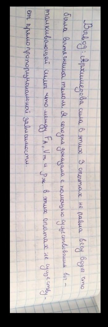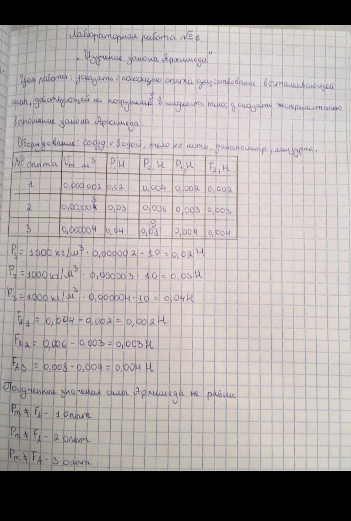 5. Сравните вес воды, вытесненной теломP, свыталкивающей силой FА.