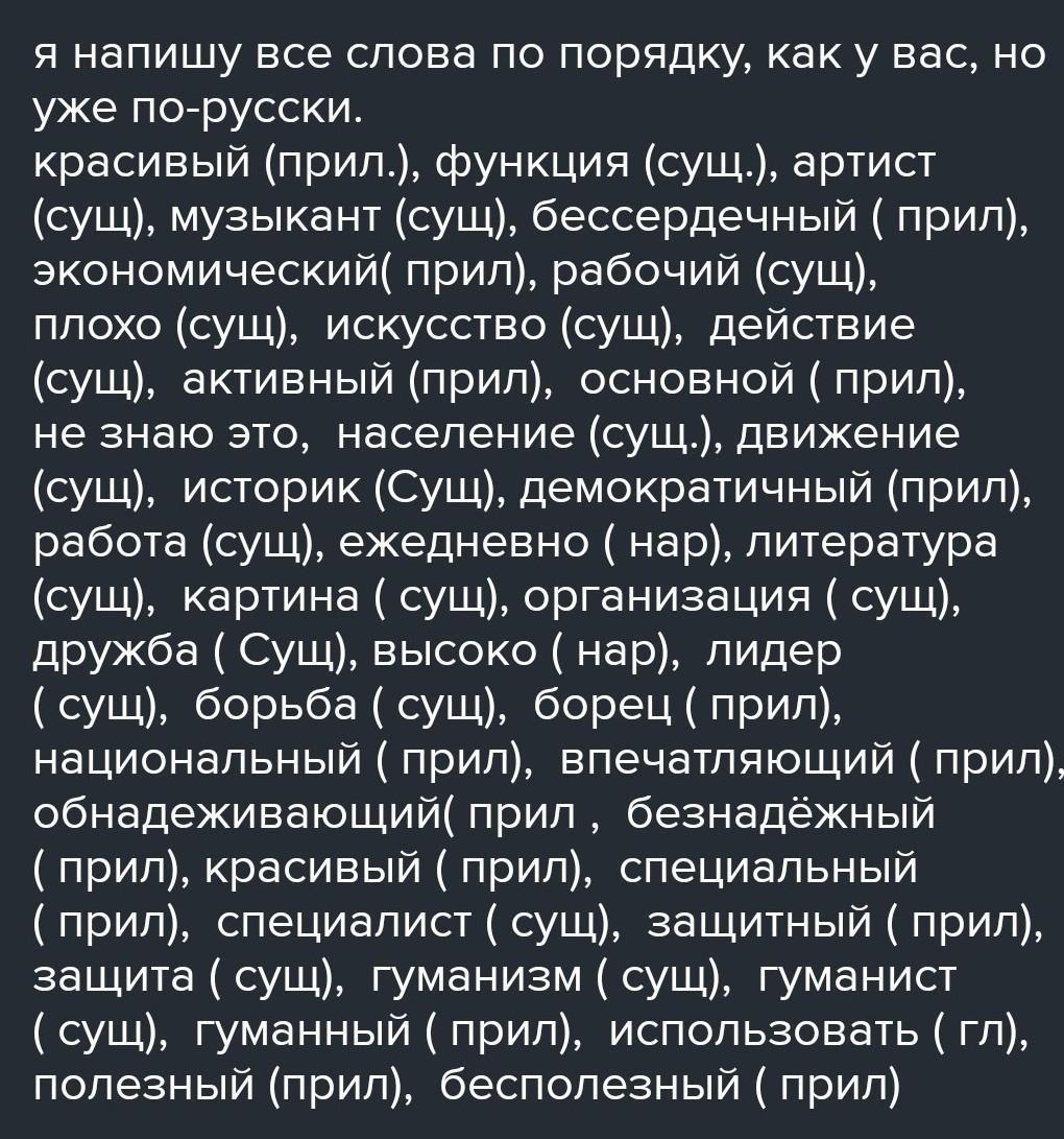 к какой части речи относятся следующие слова