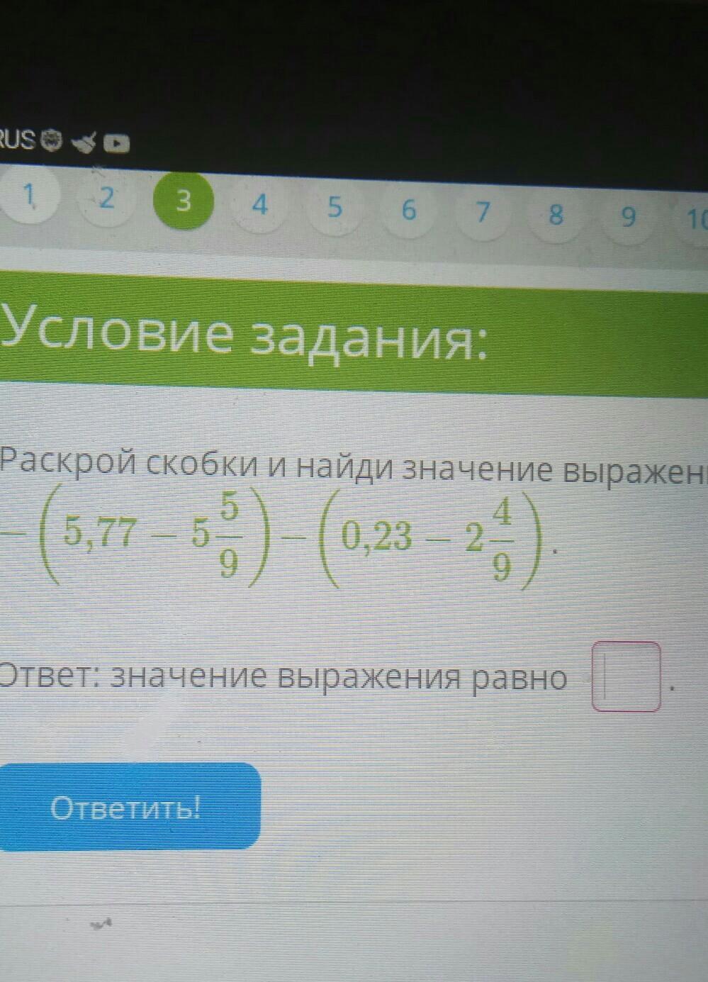 очень плохо видно, всё рябит, если правильно увидел, то так =5,77-5 5/9-0,23+2 4/9=2 193/450