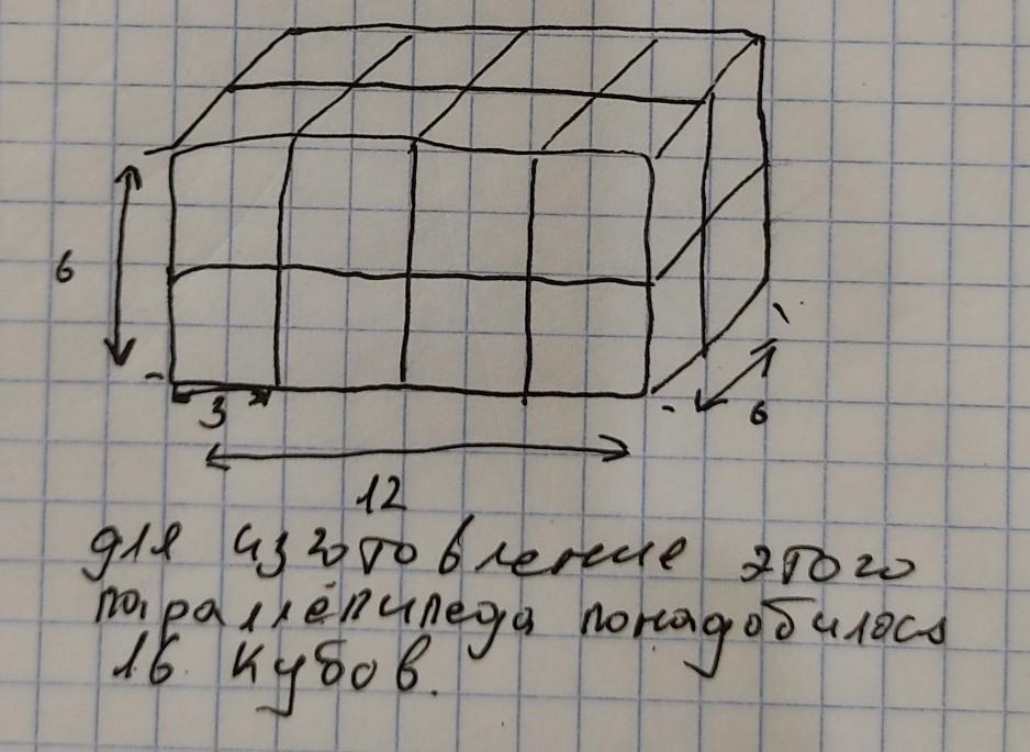 для изготовления этого параллепипеда понадобилось 16 кубов