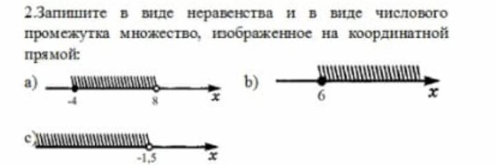 Запишите в виде неравенства и в виде числового промежутка множество,изображённое на координатной прямой: