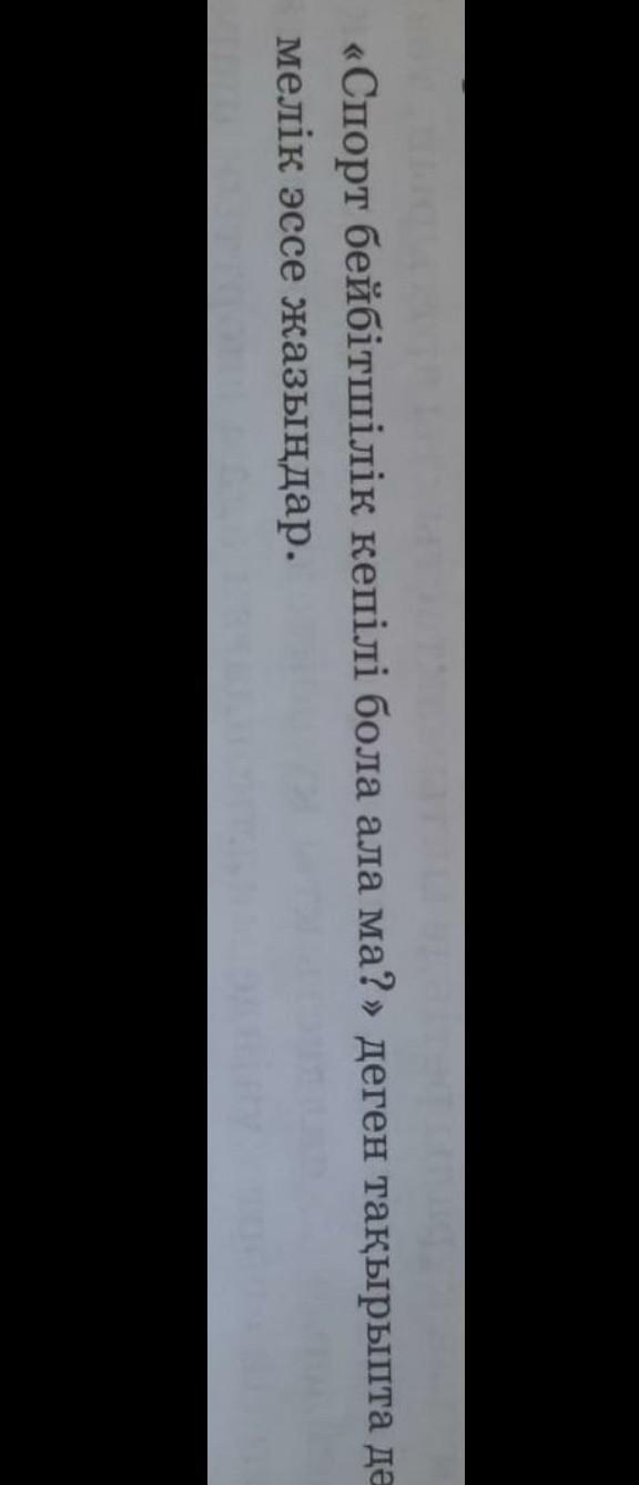 Спорт бейбітшілік кепілі деп ойлаймын. Себебі спорттық сайыстар өтуі үшін адамдар бір келісімге келу керек. Олар бір бірімен бейбітшілік келісім орнатады. Және бір қалада өткізу үшін тағы да келісім керек. Спорттың арқасында мемлекеттер бір бірімен тығыз қарым қатынас жасап жатыр. Мысалы футбол. Футбол Англиядан таралып келе жатыр. Футболды ойнамайтын бір әлемді естіген жоқпын. Футболды бар ғаламшар ойнайды деп ойлаймын. Футбол xалықаралық ойын. Футболдың президенті әр мемлекеттен келісем сұрайды. Өйткені "Әлем Чемпионаты", "Чемпиондар Лигасы" және "Еуропа Лигасы" сайыстарын өткізу үшін келісім керек. Менің оймшы бұл спорттағы "Бейбітшілік"