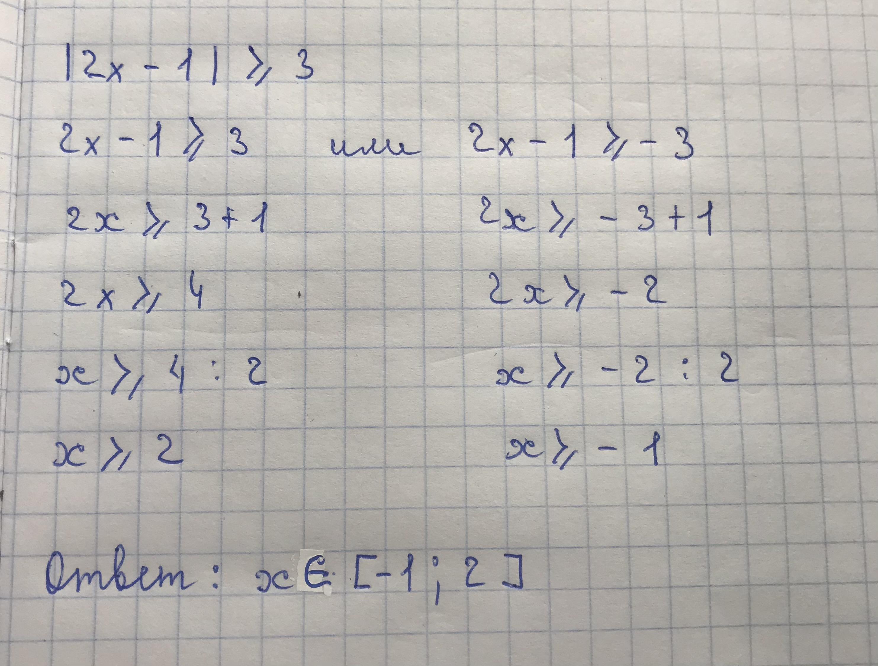 ответь:[-1;2]