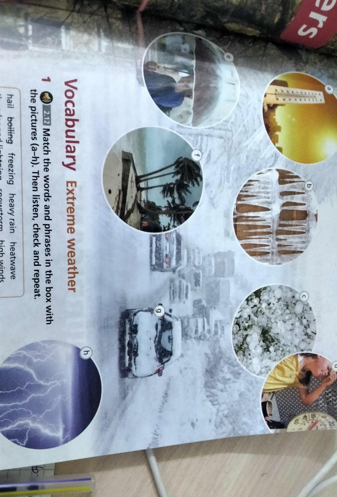 Match the words and phrases in the box with the pictures (a-h).Then listen,check and repeat