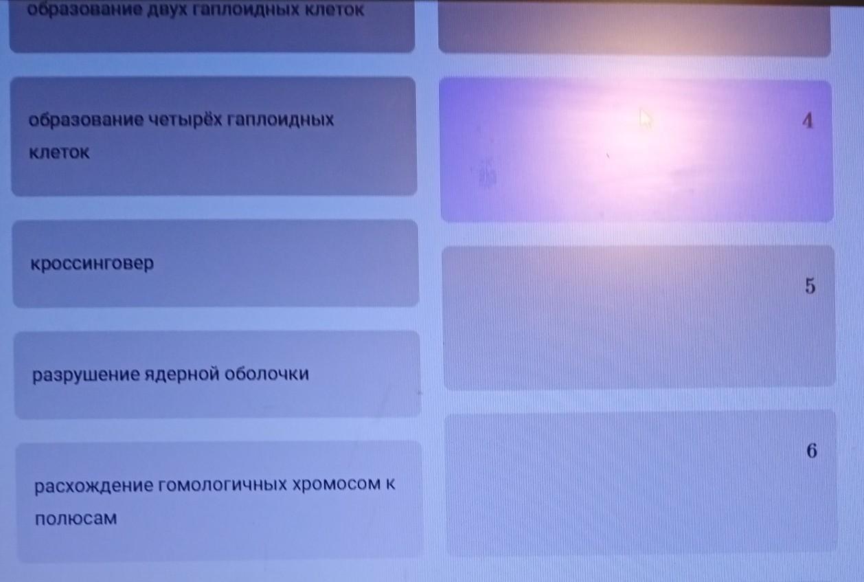 Задание: Расставьте процессы первого деления мейоза в правильном порядке. Будьте внимательны, есть лишние процессы. Сопоставьте каждому процессу и его порядковый номер