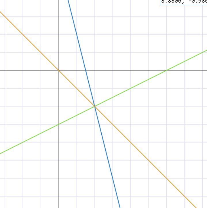 Щоб знайти значення k спочатку знайдемо значення x за допомогою двух перших рівнянь (бо знаємо просту істину, що y=y(але це не потрібно писати!!!)):