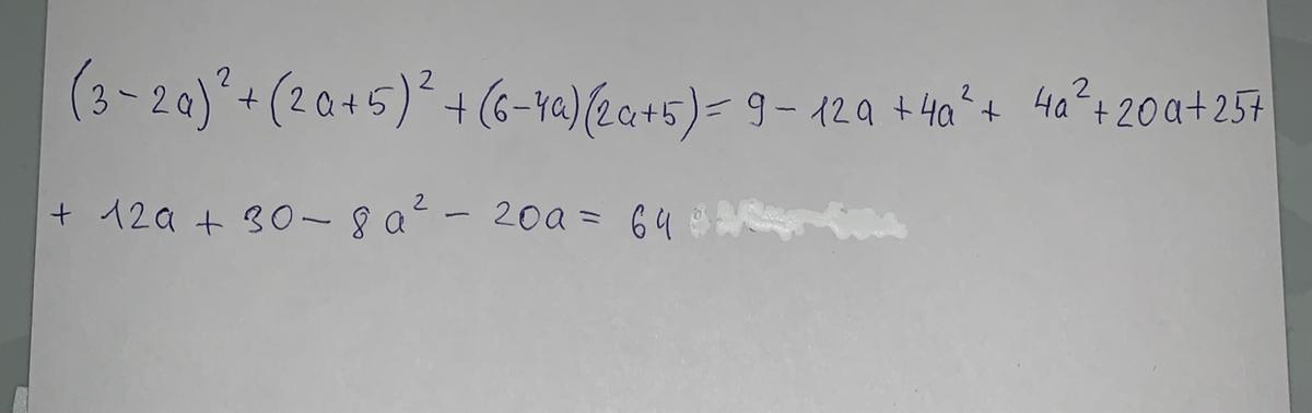 (3-2а)²+(2а+5)²+(6-4а)(2а+5)