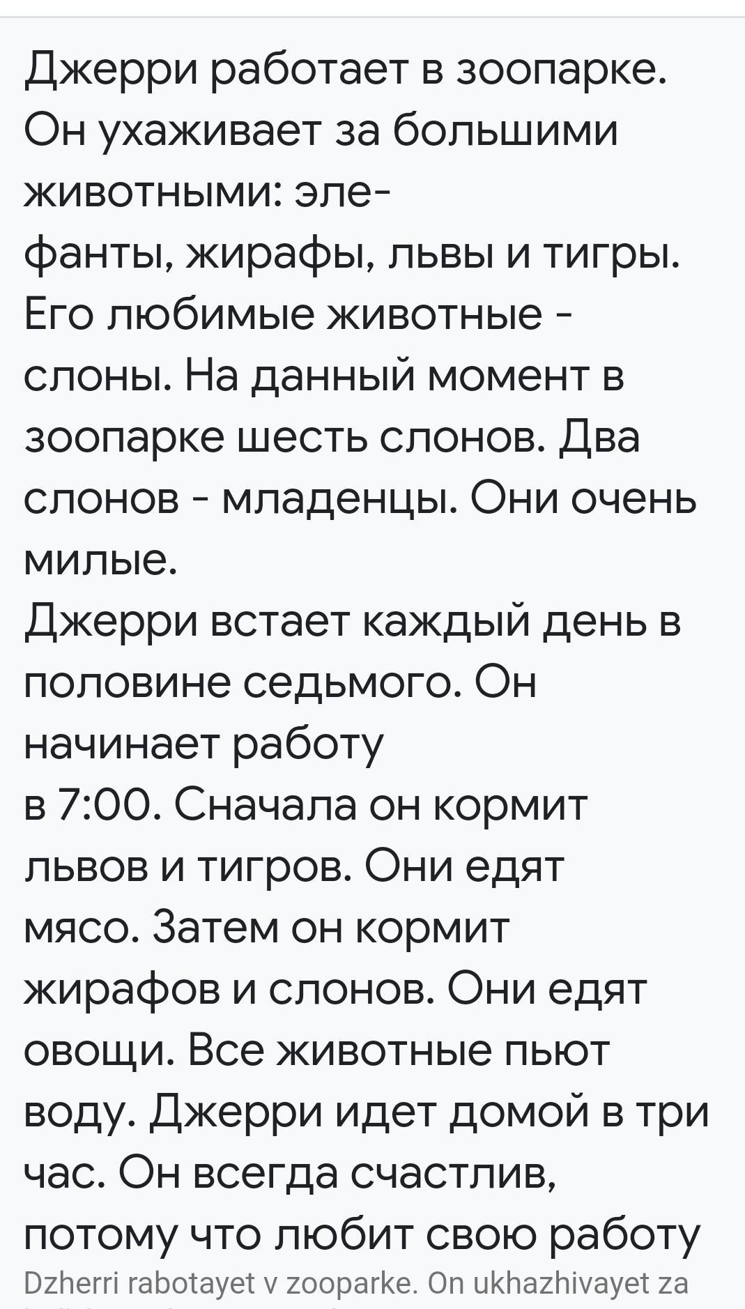 Jerry works at the zoo. He looks after the big animals: ele-