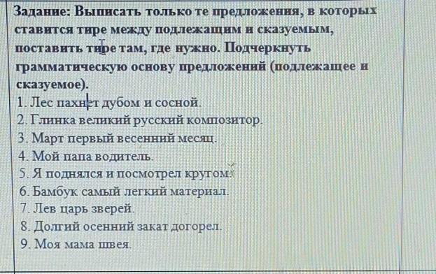 2. Глинка (подлежащее, подчеркнем одной чертой) – великий русский композитор(сказуемое, подчеркнем двумя чертами).