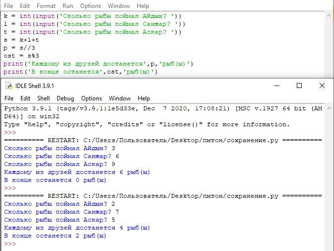 print('Каждому из друзей достанется',p,'рыб(ы)')