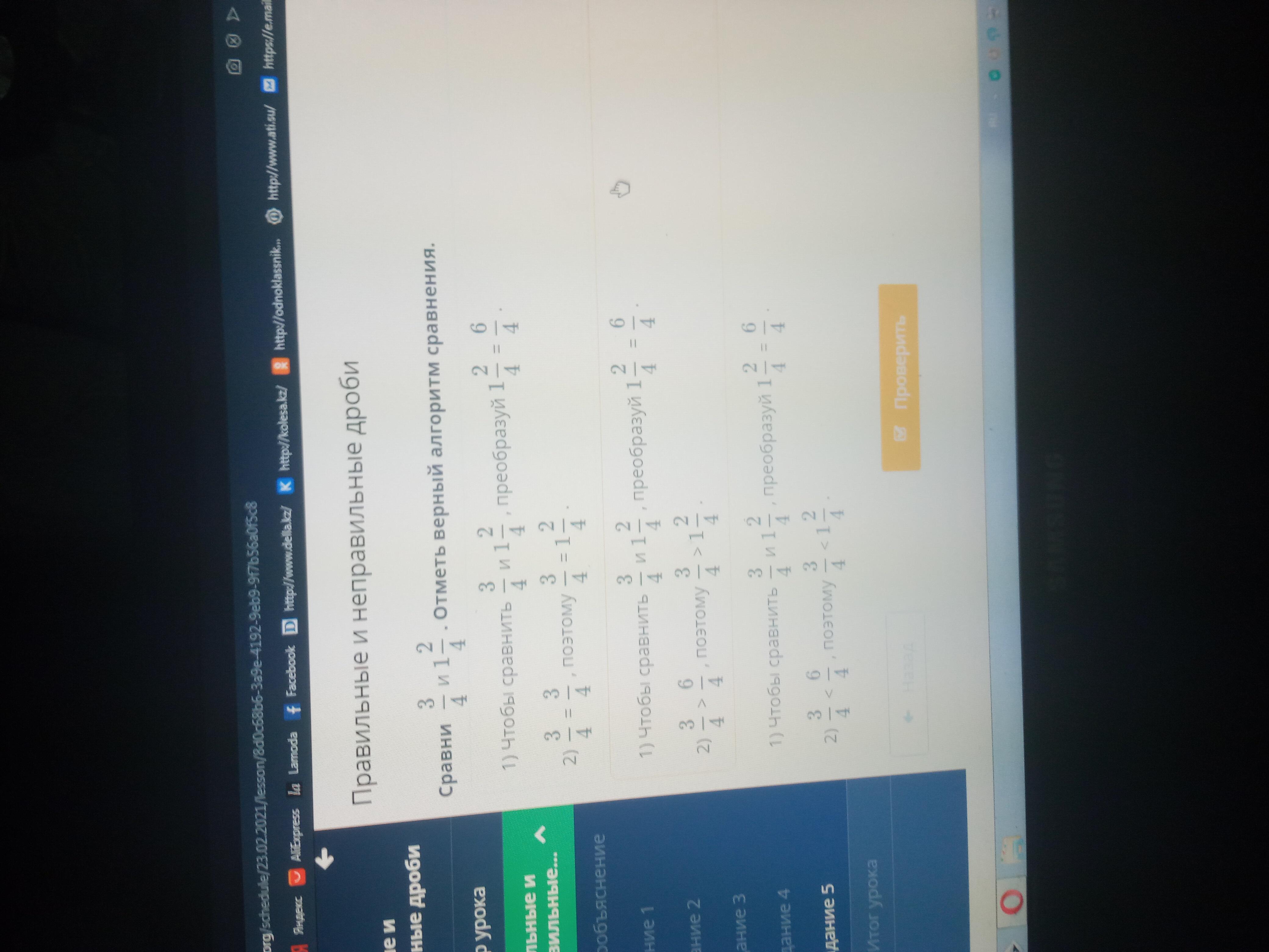 1) Чтобы сравнить 3/4 и 1 целую 2/4, преобразуй 1 целую 2/4= 6/4.