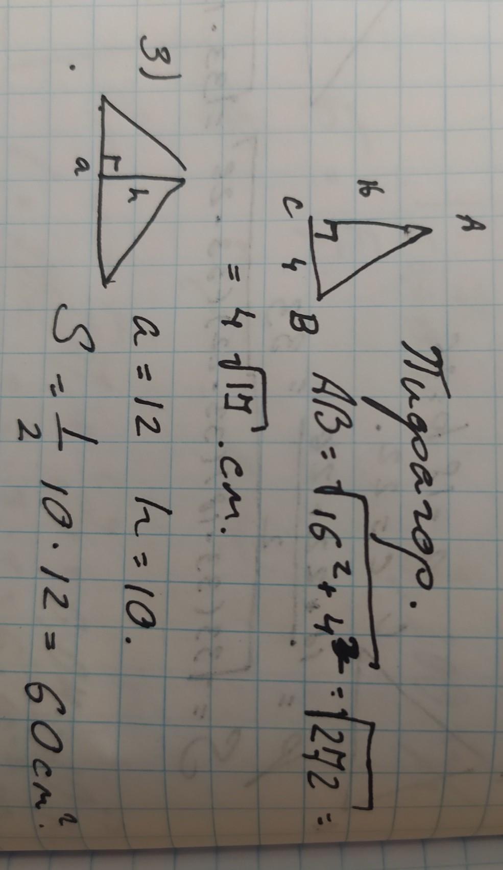 2. Найдите площадь прямоугольного треугольника, если его катеты равны 4 см и 16 см