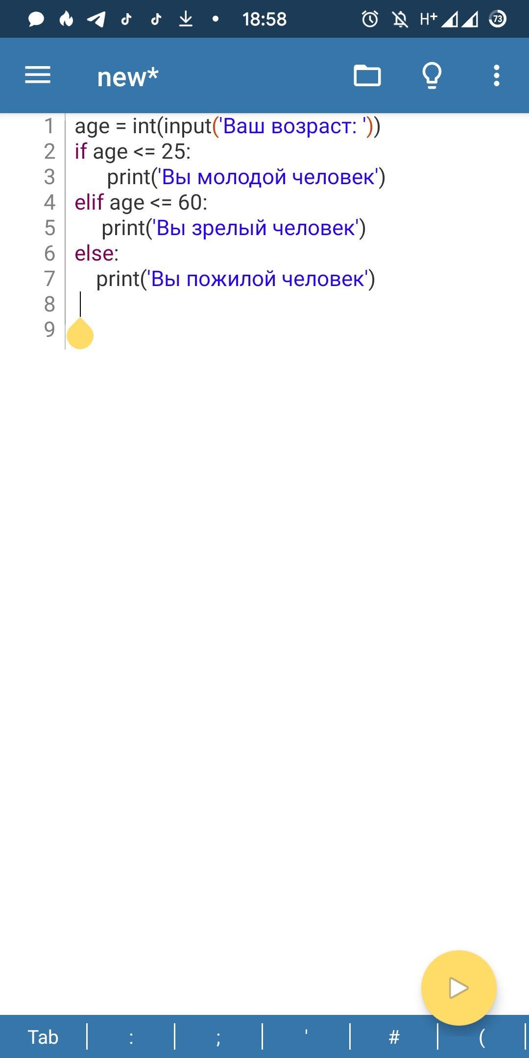 Составить программу для определения является ли человек молодым (от 0 до 25 лет), зрелым ( от 26 до 60 лет) или пожилым (с 61 года). *