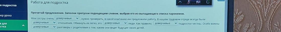 доверчивые отношения. Обмануть их легко, это доверчивые люди. Как правило, доверчивые подростки честны. Особо важны