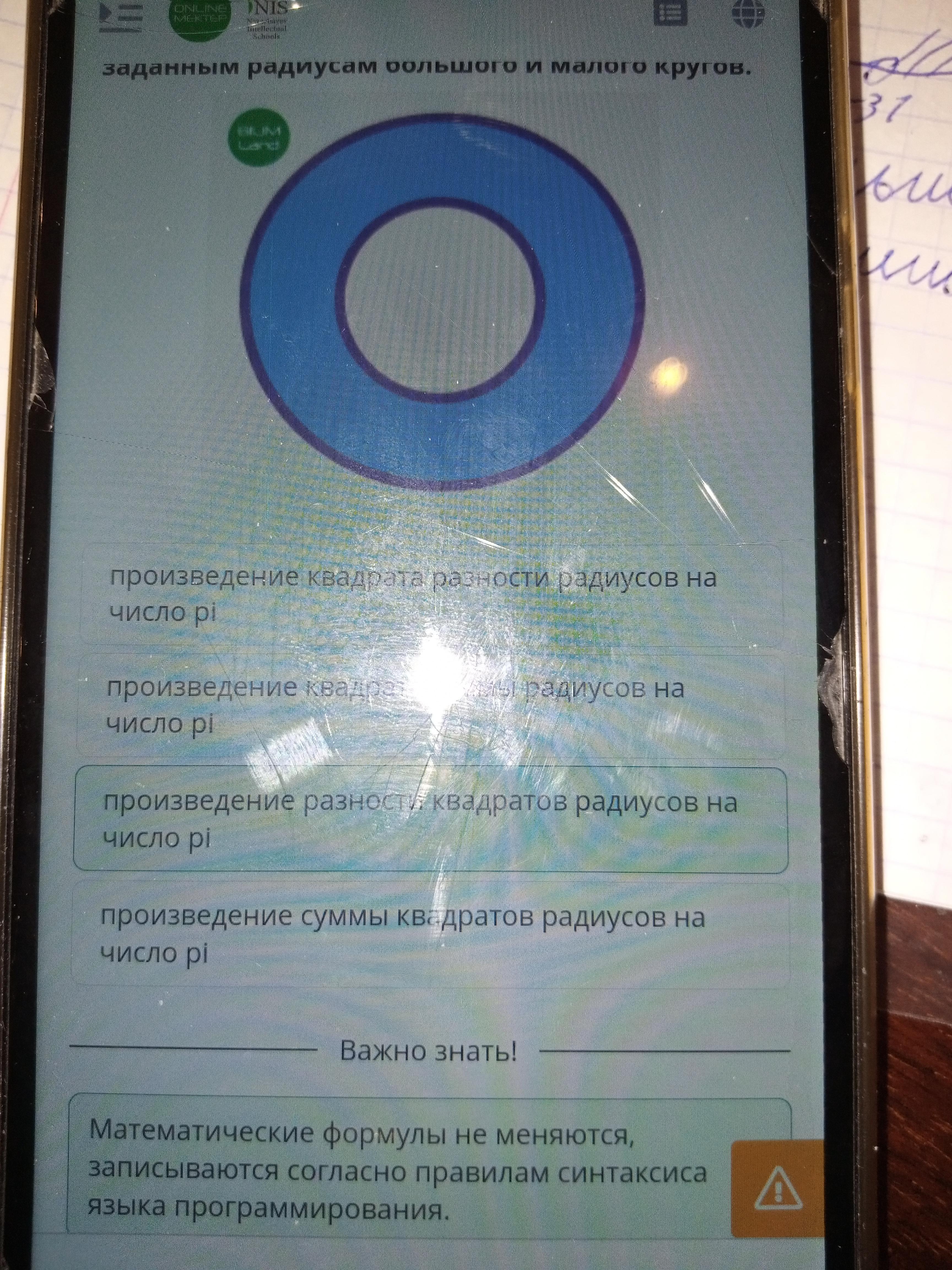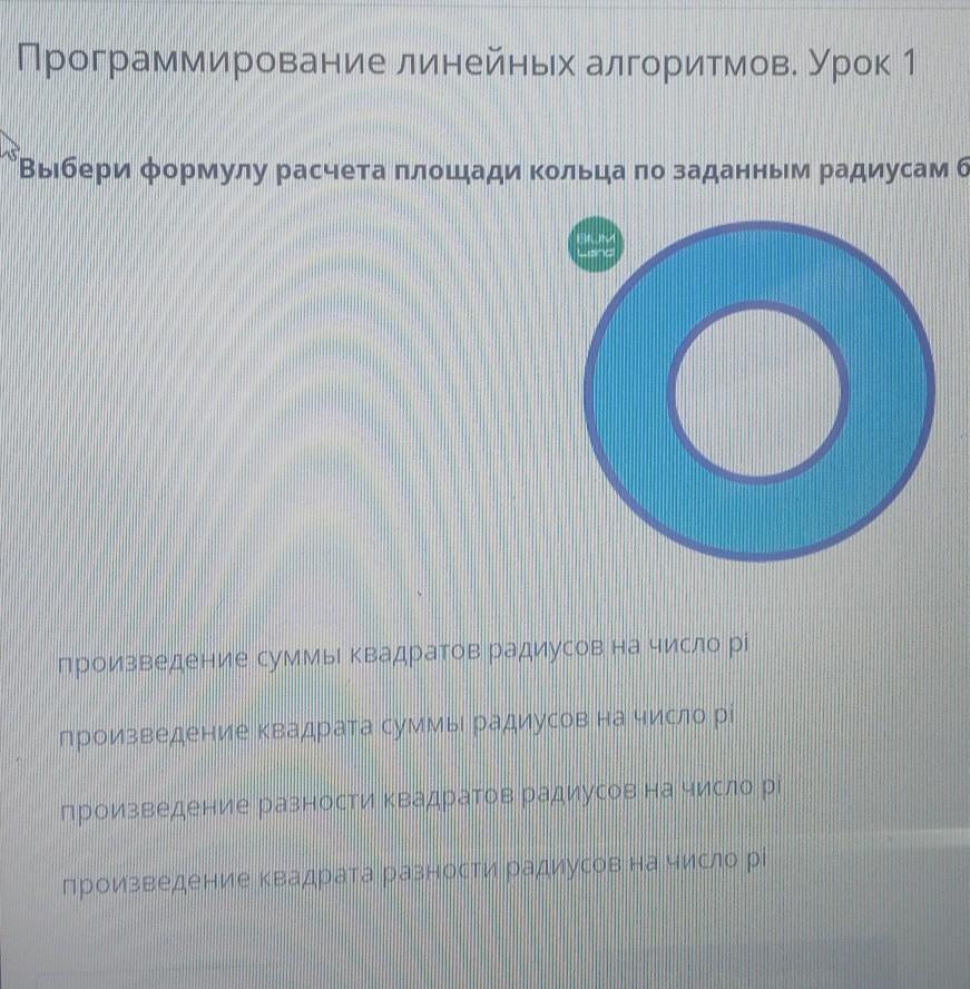 Выбери формула расчёта площади кольца по заданным радиусом большого и малого кругов