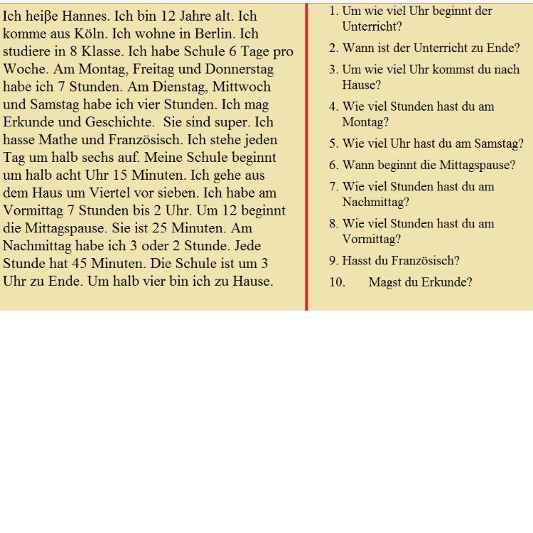 1. Um halb acht Uhr 15 Minuten fängt die Schule an