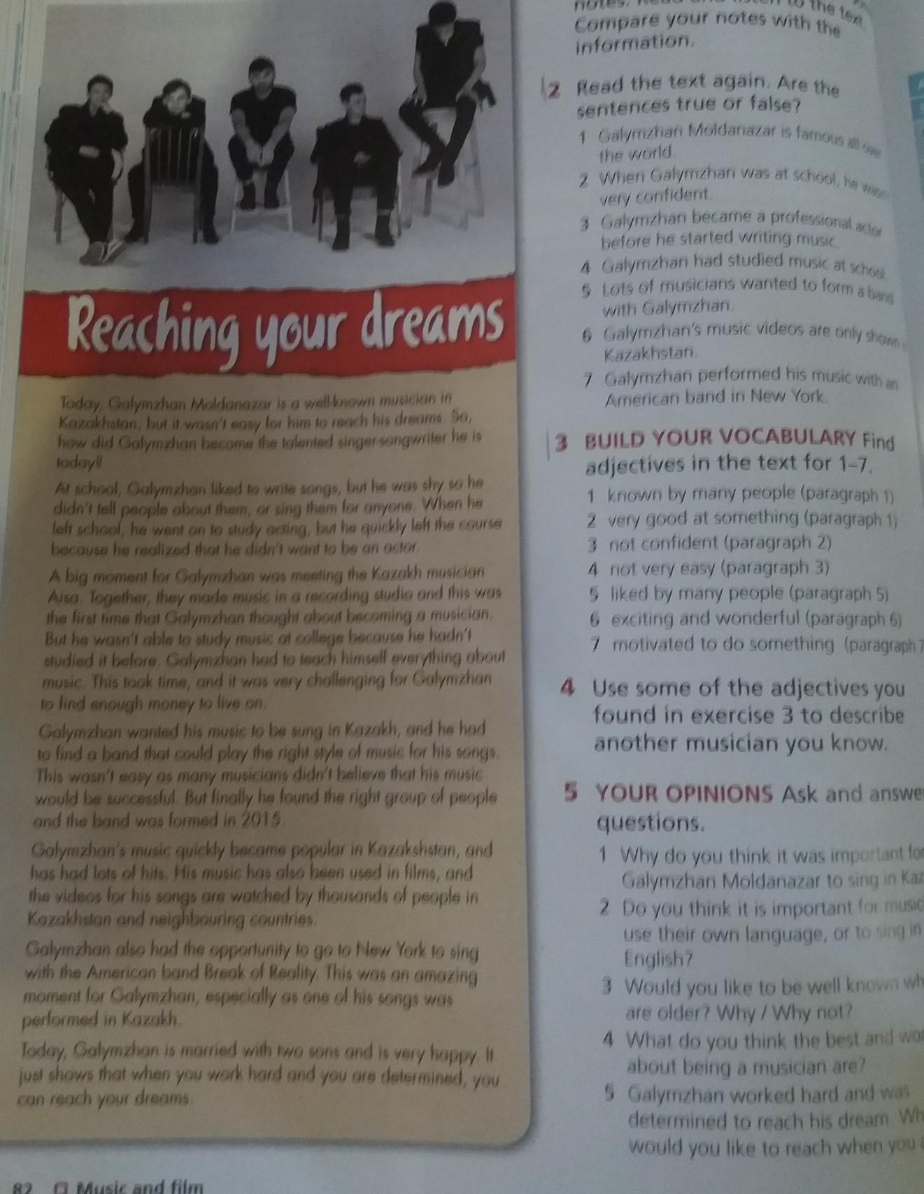5 Lots of musicians wanted to form a band with Galymzhan. - FALSE