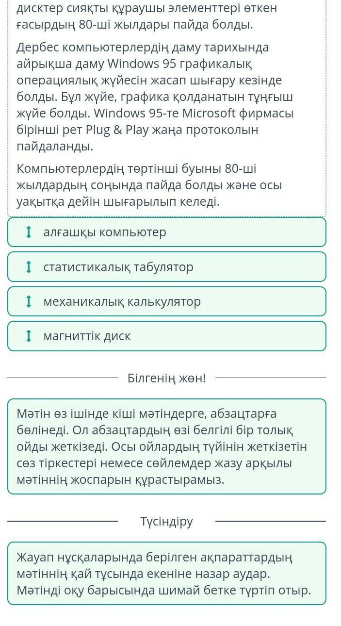 Мәтінді оқы. Жоспар ретінде сөз тіркестерін ретімен қой.