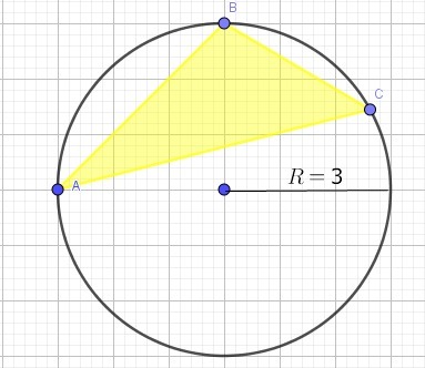 Общая часть окружности и треугольника АВС : точки A, B, C