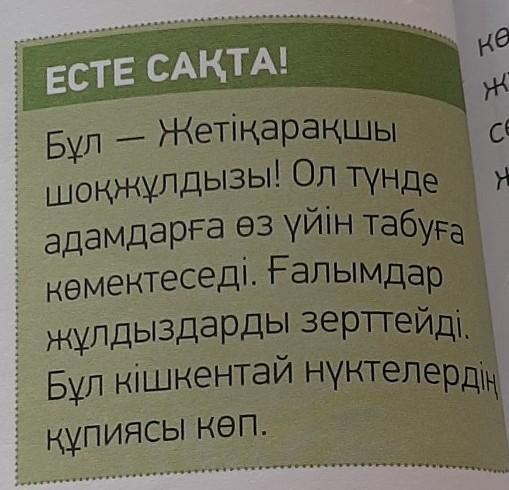Мәтіннен түнгі аспанды сипаттаған сөйлемдерді тауып жаз. Найди в тексте предложения, описывающие ночное небо